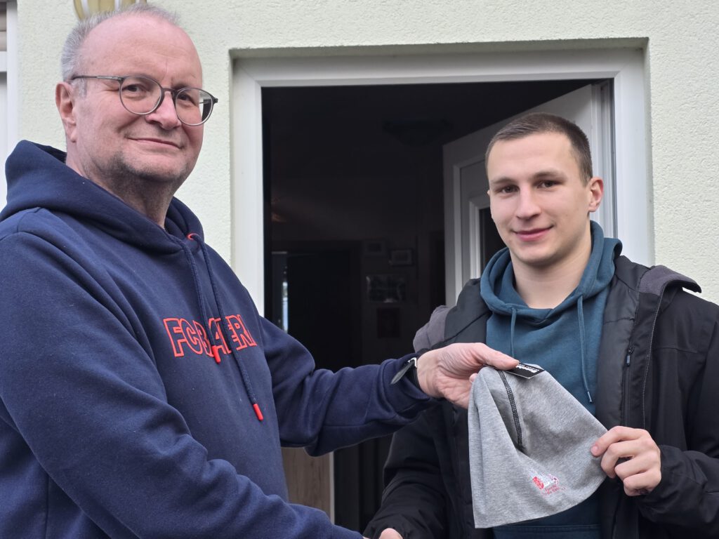 Zuletzt hat unser Tobias H. einen Fanclub-Beanie gewonnen, denn er sich bei Andreas (1. Vorsitzender) abholte und sich darüber – passend zur Jahreszeit – sehr freute.