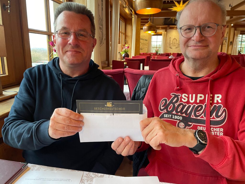 Als zusätzliches Dankeschön für seine tolle Unterstützung erhielt Steffen noch einen Gutschein für ein asiatisches Restaurant von mir – im Auftrag des Vereins – überreicht, über den er sich sichtlich freute.